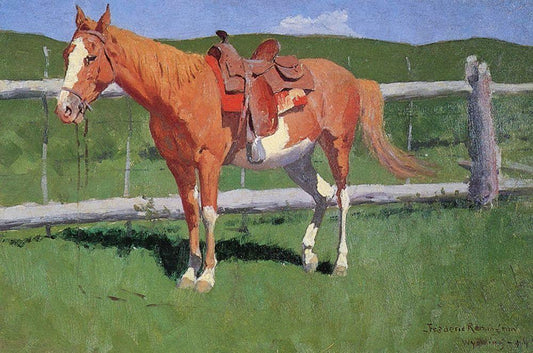 Horse Study-Wyoming White Modern Wood Framed Art Print with Double Matting by Remington, Frederic