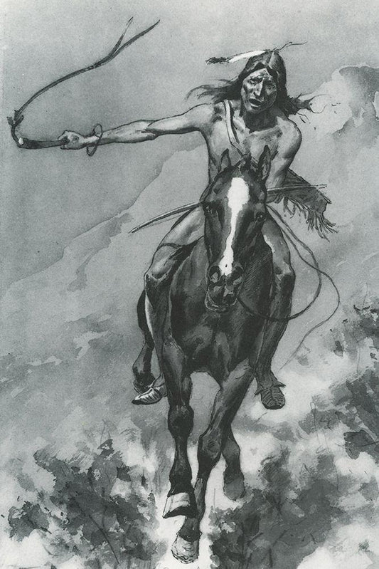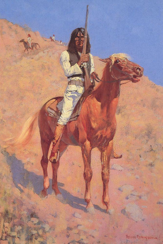 Indian on Horseback White Modern Wood Framed Art Print with Double Matting by Remington, Frederic