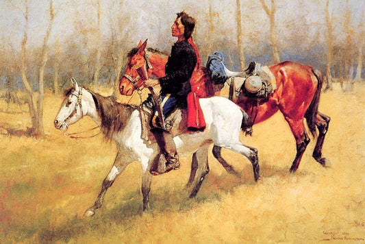 Arrival of a Courier-Sketch White Modern Wood Framed Art Print with Double Matting by Remington, Frederic