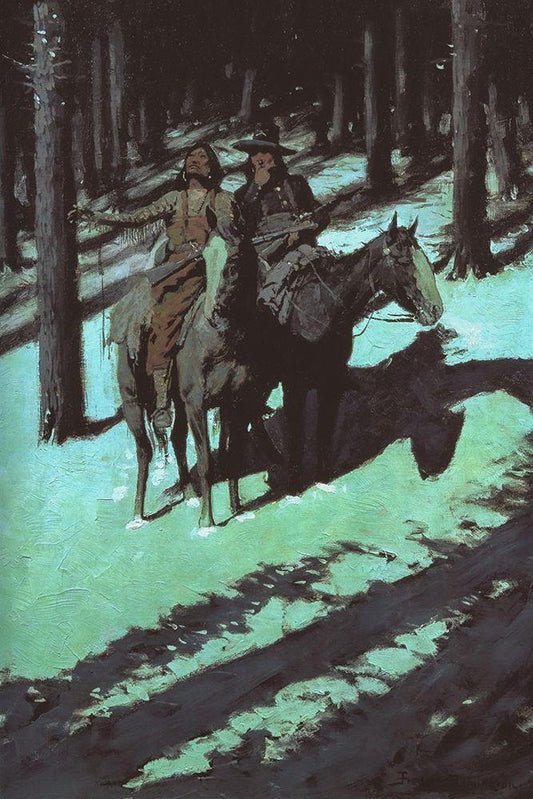 Indian Scout with Lost Troop Horse White Modern Wood Framed Art Print with Double Matting by Remington, Frederic