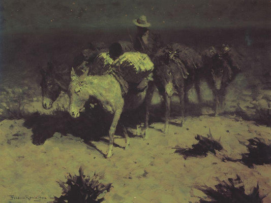 Moonlight Scene White Modern Wood Framed Art Print with Double Matting by Remington, Frederic