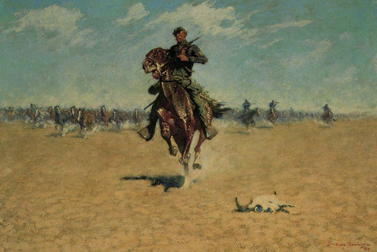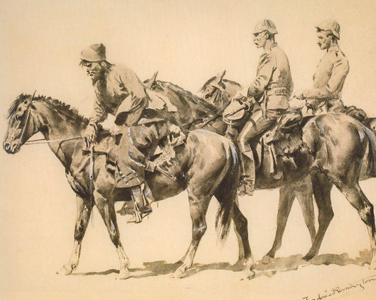 A Packer-Sketch White Modern Wood Framed Art Print with Double Matting by Remington, Frederic