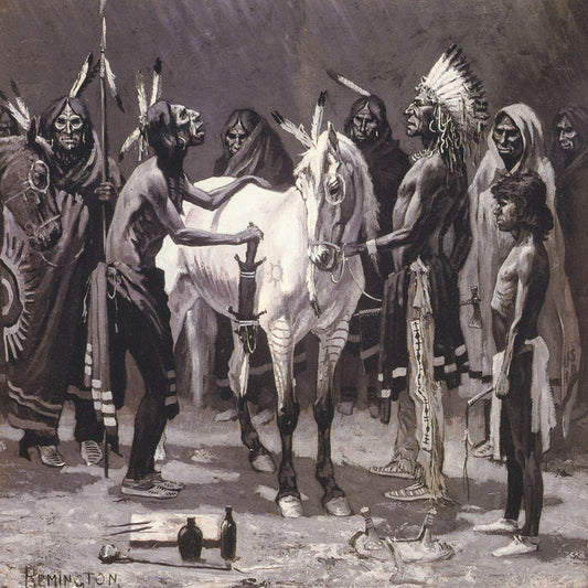 Making Medicine Ponies White Modern Wood Framed Art Print with Double Matting by Remington, Frederic