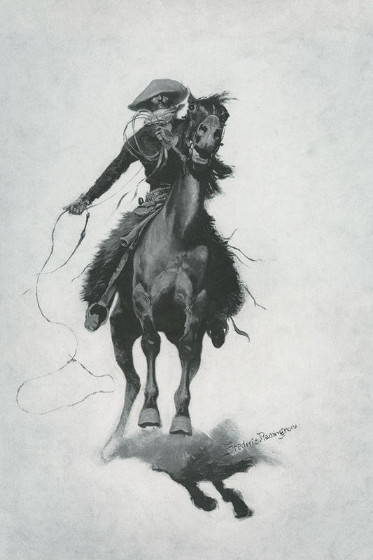 The Cow Puncher-Sketch White Modern Wood Framed Art Print with Double Matting by Remington, Frederic