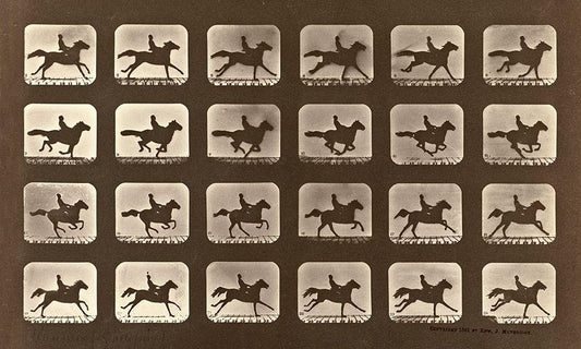 Motion Study: Man Riding A Horse White Modern Wood Framed Art Print with Double Matting by Muybridge, Eadweard J.