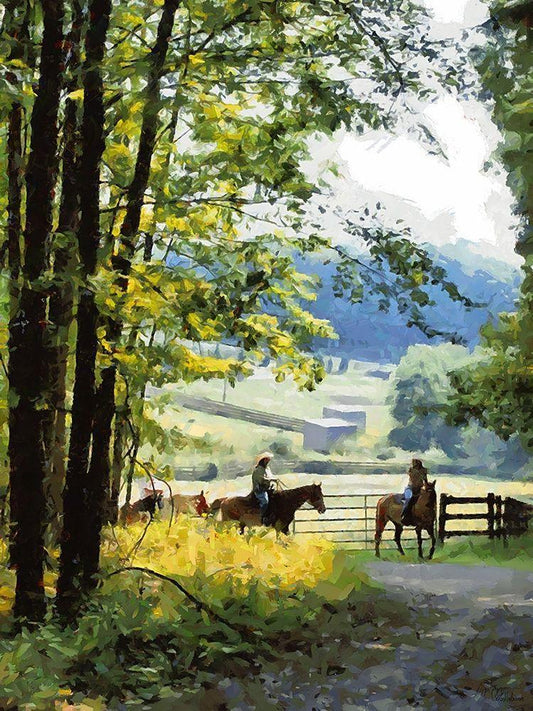 Horse Riding II White Modern Wood Framed Art Print with Double Matting by Medeiros, Celito