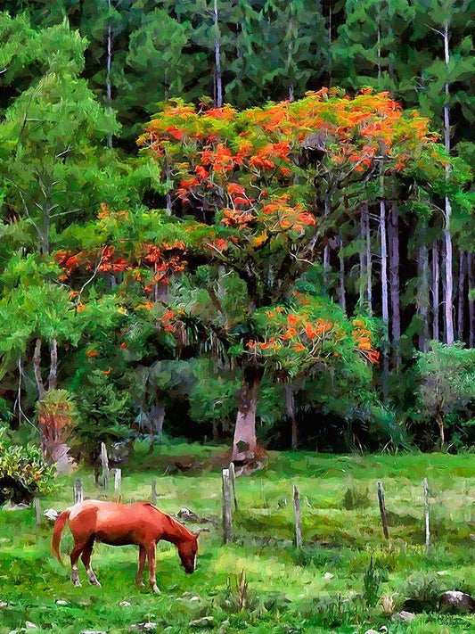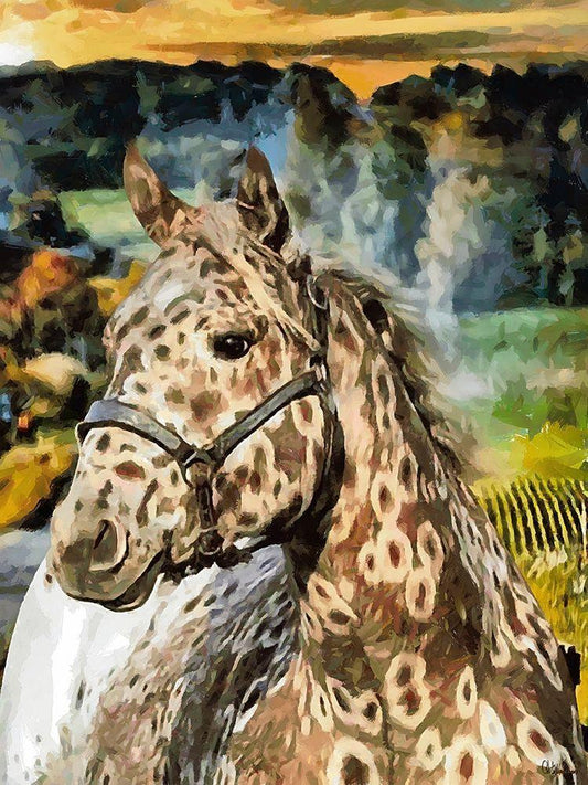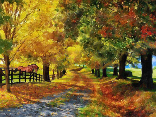 Autumn way with Horse White Modern Wood Framed Art Print with Double Matting by Medeiros, Celito