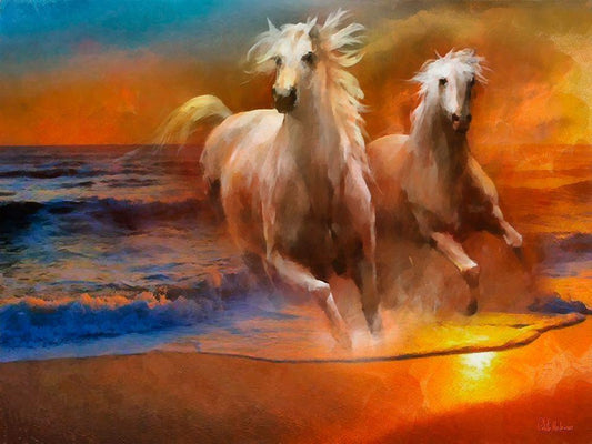 Horses on the Beach White Modern Wood Framed Art Print with Double Matting by Medeiros, Celito