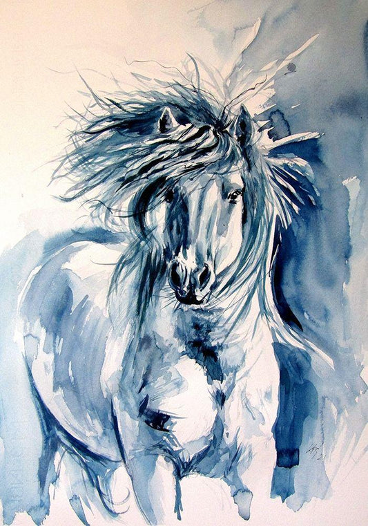 Horse White Modern Wood Framed Art Print with Double Matting by Kovacs, Anna Brigite