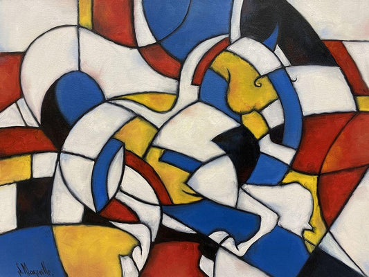 Pete Mondrians Horse White Modern Wood Framed Art Print with Double Matting by Singatullin, Marsel