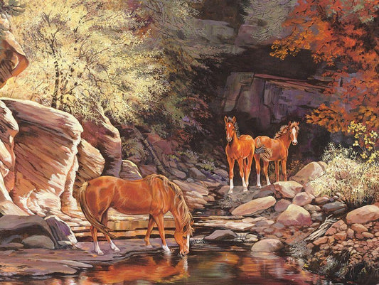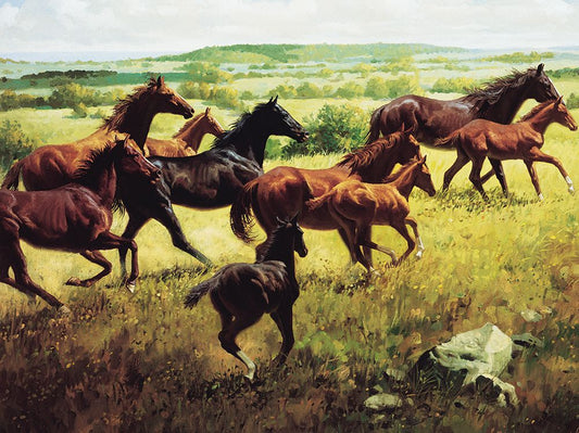 Wild Horses I White Modern Wood Framed Art Print with Double Matting by Unknown