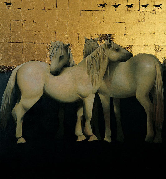 White Horses White Modern Wood Framed Art Print with Double Matting by Unknown