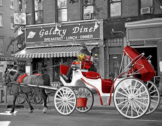 Ninth Avenue Carriage White Modern Wood Framed Art Print with Double Matting by Maloratsky, Igor