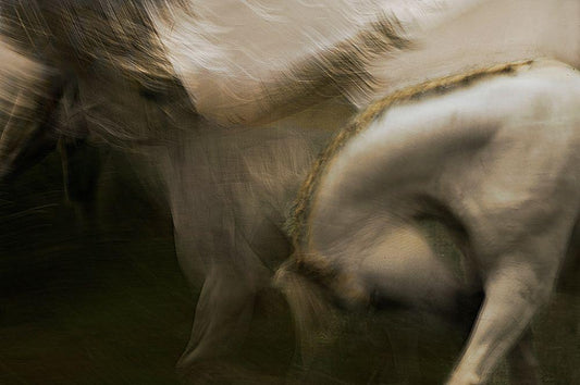Gallop In White Modern Wood Framed Art Print with Double Matting by Malovrh, Milan