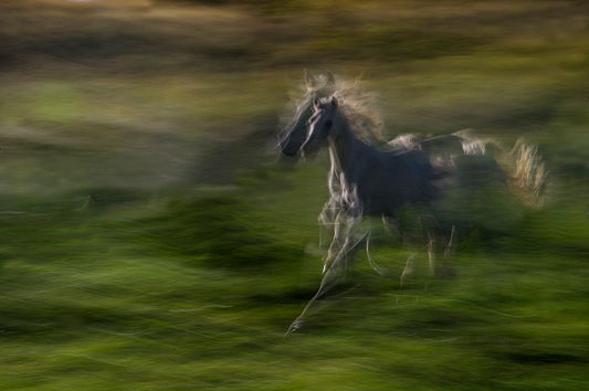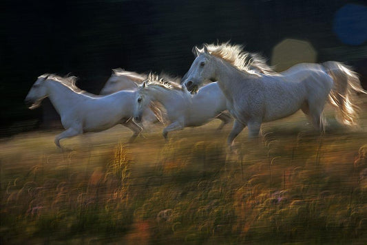Galloping White Modern Wood Framed Art Print with Double Matting by Malovrh, Milan