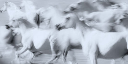 Horses on the Run White Modern Wood Framed Art Print with Double Matting by Zvelebil Phd, Marketa