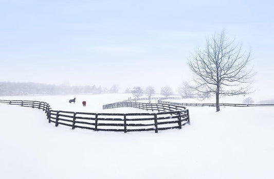 Winter Farm White Modern Wood Framed Art Print with Double Matting by Deng, Larry