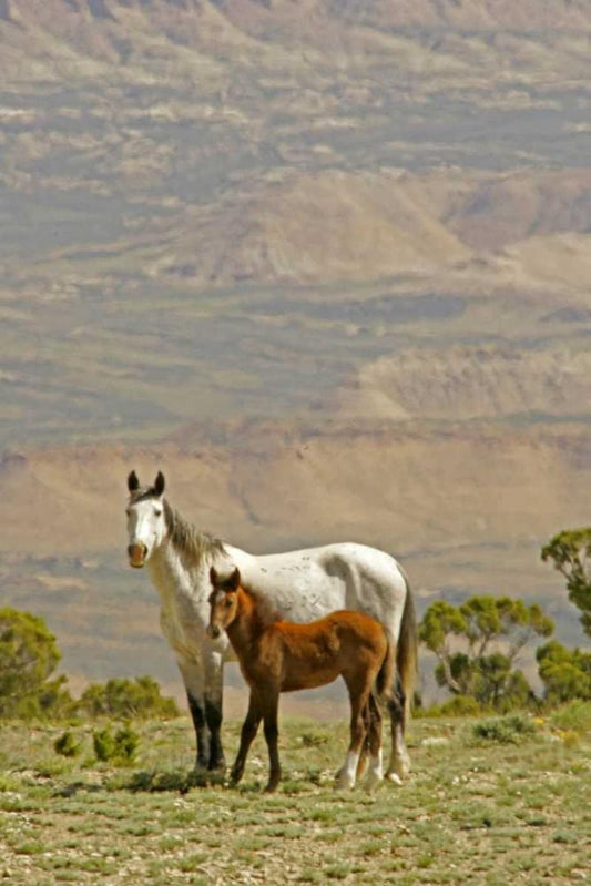 Wyoming, Carbon County Wild horse mare and colt White Modern Wood Framed Art Print with Double Matting by Illg, Cathy and Gordon