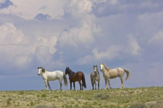 WY, Carbon Co, Wild horses and building clouds White Modern Wood Framed Art Print with Double Matting by Illg, Cathy and Gordon