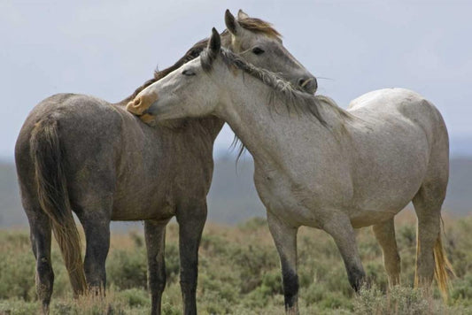 Wyoming, Carbon Wild horses grooming each other White Modern Wood Framed Art Print with Double Matting by Illg, Cathy and Gordon