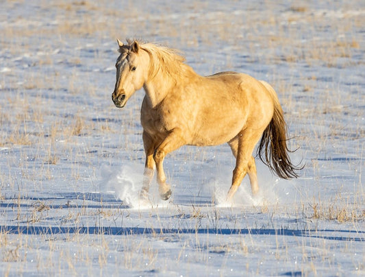 USA- Shell- Wyoming. Hideout Ranch lone horse in snow. White Modern Wood Framed Art Print with Double Matting by Gulin, Darrell