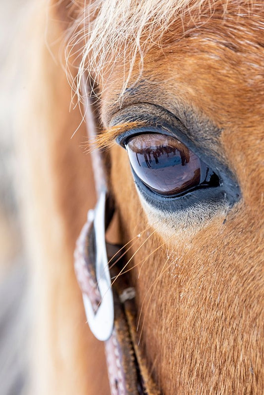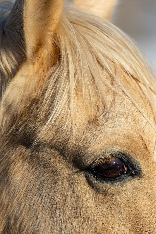 USA- Shell- Wyoming. Hideout Ranch close-up of horses eye. White Modern Wood Framed Art Print with Double Matting by Gulin, Darrell
