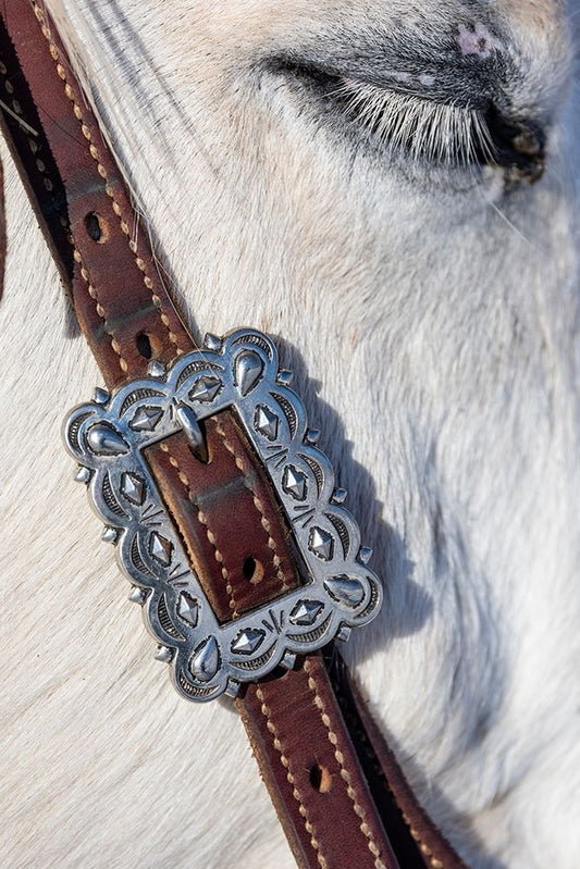 USA- Shell- Wyoming. Hideout Ranch tack on horse. White Modern Wood Framed Art Print with Double Matting by Gulin, Darrell
