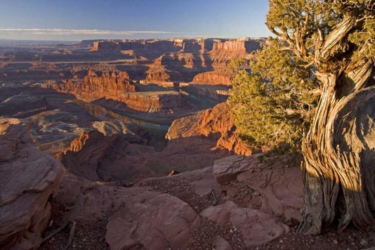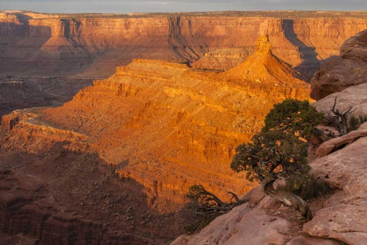 Utah, Dead Horse Point Sunrise on juniper tree White Modern Wood Framed Art Print with Double Matting by Illg, Cathy and Gordon