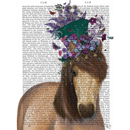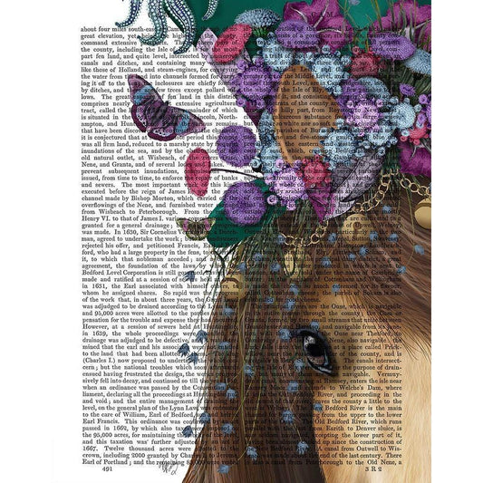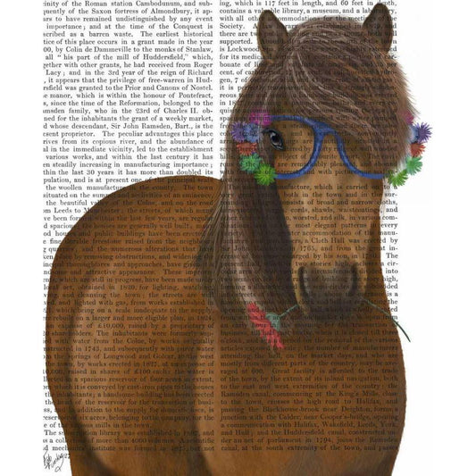 Horse and Flower Glasses White Modern Wood Framed Art Print by Fab Funky