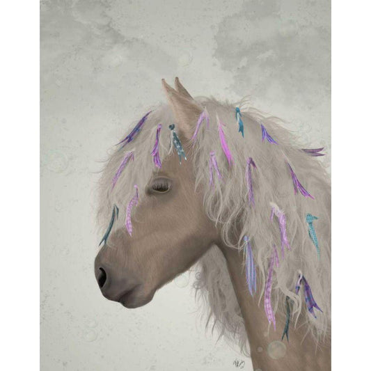 Horse Beige with Ribbons White Modern Wood Framed Art Print by Fab Funky