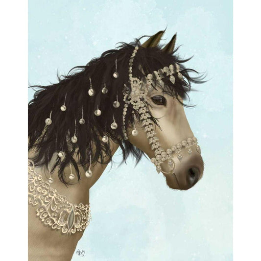Horse Buckskin with Jewelled Bridle White Modern Wood Framed Art Print by Fab Funky