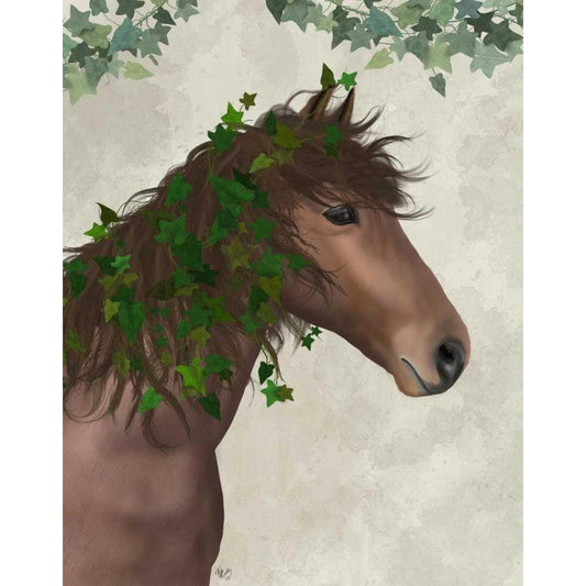 Horse Porcelain with Ivy White Modern Wood Framed Art Print by Fab Funky
