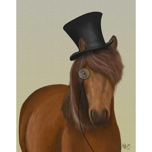 Horse Top Hat and Monocle White Modern Wood Framed Art Print by Fab Funky