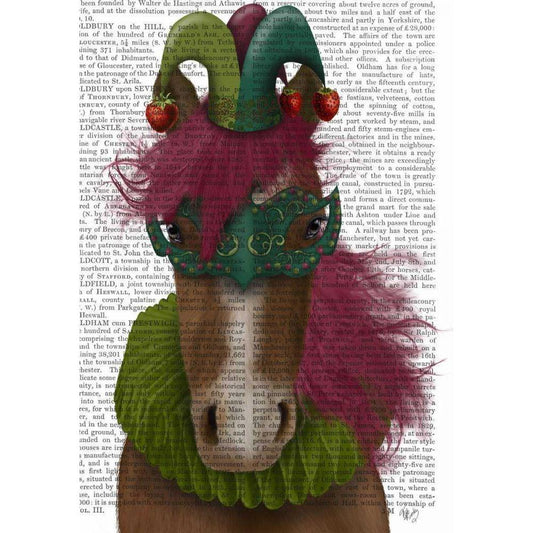 Horse Strawberry Fool White Modern Wood Framed Art Print by Fab Funky