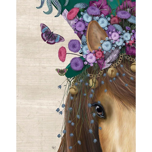 Horse Mad Hatter, Close Up White Modern Wood Framed Art Print by Fab Funky