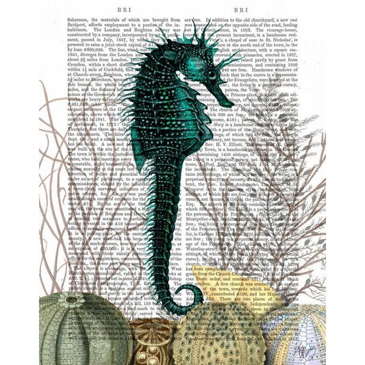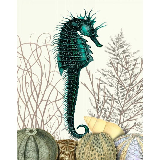SeaHorse and Sea Urchins White Modern Wood Framed Art Print by Fab Funky