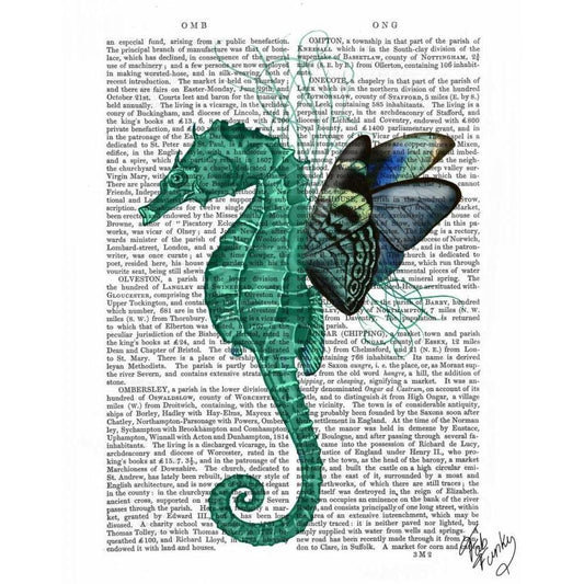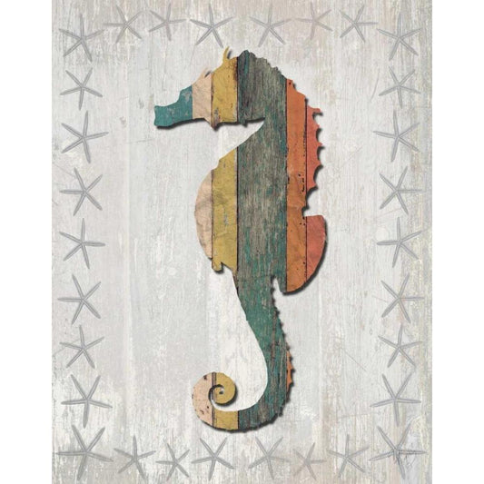 Distressed Wood Style Seahorse 1 White Modern Wood Framed Art Print by Fab Funky