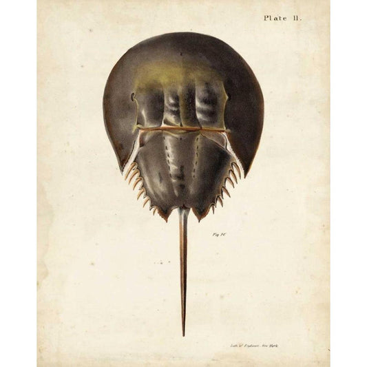 Vintage Horseshoe Crab White Modern Wood Framed Art Print by DeKay