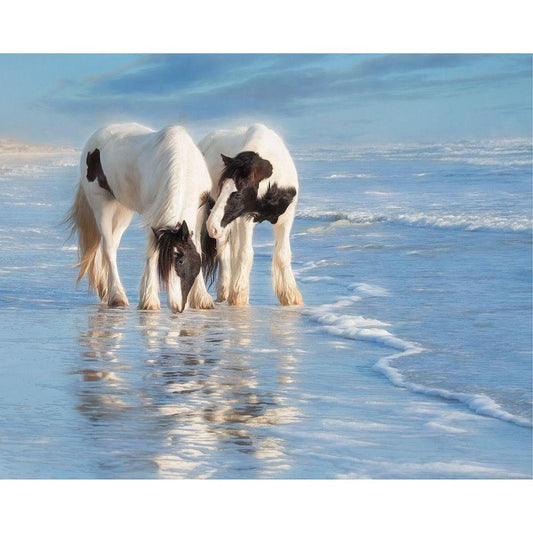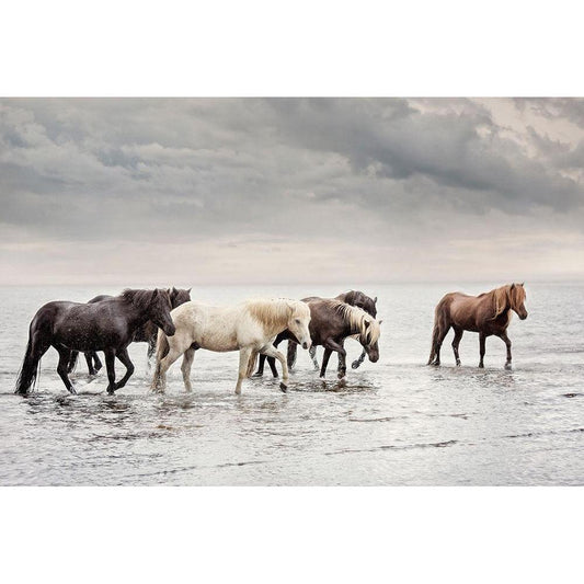 Water Horses I White Modern Wood Framed Art Print by PHBurchett