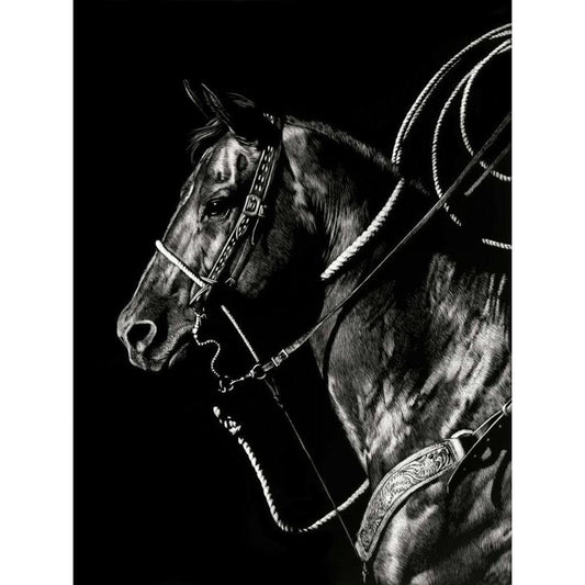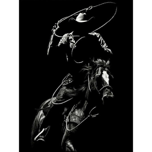 Scratchboard Rodeo I White Modern Wood Framed Art Print by Chapman, Julie T.