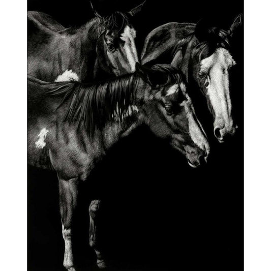 BandW Horses X White Modern Wood Framed Art Print by PHBurchett