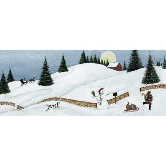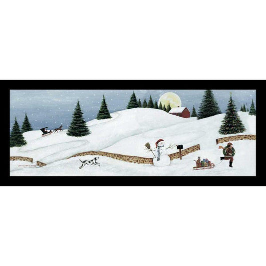Christmas Valley Snowman White Modern Wood Framed Art Print by Brown, David Carter