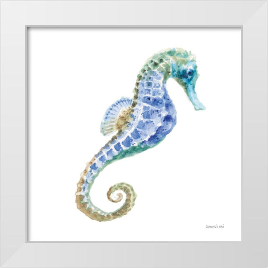 Undersea Seahorse White Modern Wood Framed Art Print by Nai, Danhui