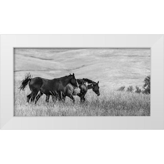Rangeland Horses White Modern Wood Framed Art Print by Nai, Danhui