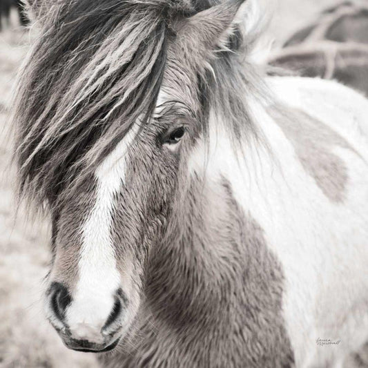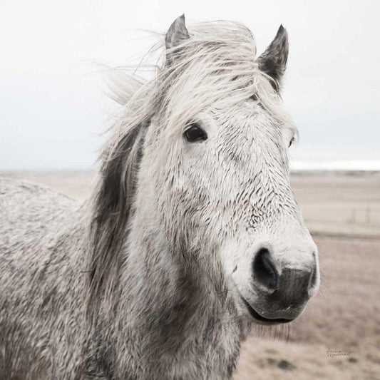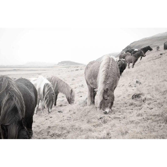 Horses of Hofn II BW White Modern Wood Framed Art Print by Marshall, Laura