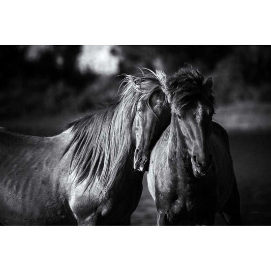 Horses of Hofn I BW White Modern Wood Framed Art Print by Marshall, Laura