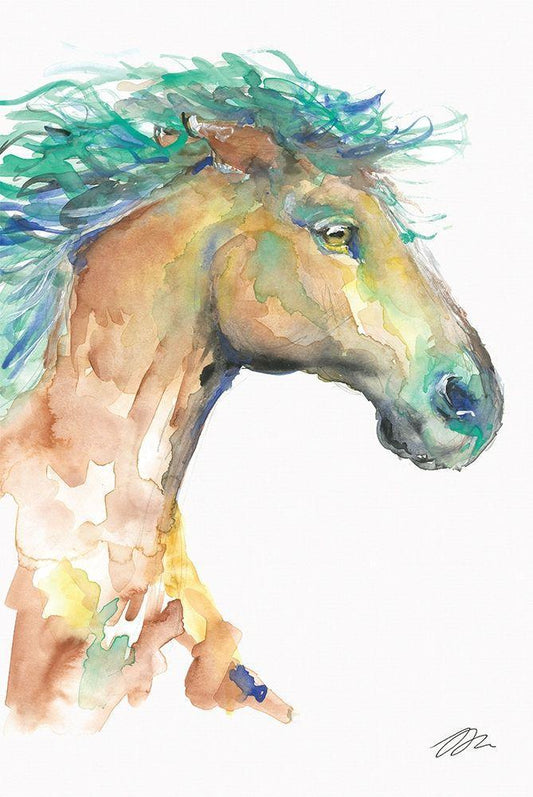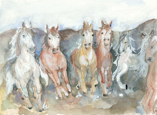 Watercolor Horses White Modern Wood Framed Art Print with Double Matting by Mingo, Jessica