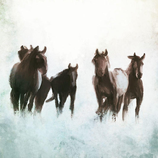 Team of Brown Horses Running White Modern Wood Framed Art Print by Meneely, Dan