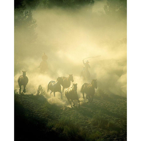 Horse Stampede White Modern Wood Framed Art Print by Walker, Carol