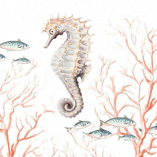 Seahorse On Coral White Modern Wood Framed Art Print by Pinto, Patricia